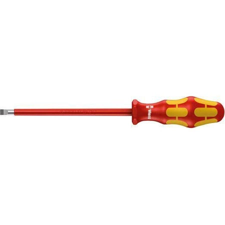 - Śrubokręt płaski izolowany 8x1,6x200 mm Wera z wielokomponentową rękojeścią Kraftform Plus. Trzpienie izolowane gwarantują bezpieczeństwo pracy do 1000V. Końcówka Lasertip zapewnia pewne osadzenie narzędzia we wkręcie.