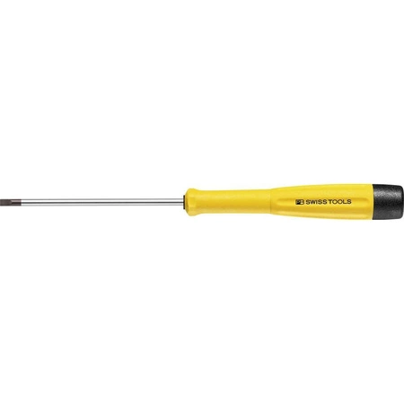 - Śrubokręt płaski 3 x 0,5 x 80 mm marki Swiss Tools dla elektroników do pracy z elementami wrażliwymi na wyładowania elektrostatyczne. Wyposażony w okrągły trzpień i końcówkę Black Point dla zwiększenia siły i dokładności pasowania.
