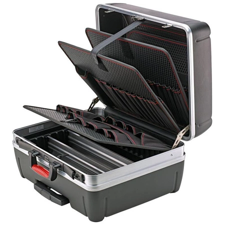 - Walizka narzędziowa na kółkach HDPE 485×375×230 mm. Mocna konstrukcja, uchwyt teleskopowy, rama aluminiowa i zamek szyfrowy. Bogato wyposażone wnętrze z przegródkami.