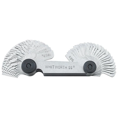 - Wzorzec do gwintów 58 listków metryczny/Whitwortha/rurowy ze stali. Dokładnie frezowane zęby ułatwiają kontrolę skoku gwintów.