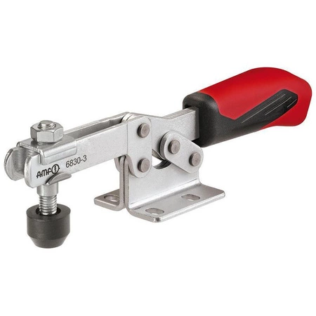 Zacisk kolankowy poziomy AMF 561275 to wytrzymały i ergonomiczny docisk szybkomocujący przeznaczony do uniwersalnego mocowania detali na stołach maszynowych, stanowiskach montażowych i w warsztatach. Wyposażony w czerwony uchwyt z miękkimi komponentami oraz otwarte ramię zaciskowe ze stopą poziomą, gwarantuje wygodną i bezpieczną obsługę przy dużej sile zacisku.