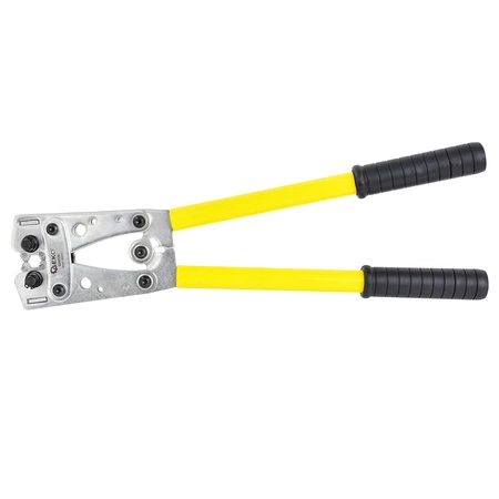 - Solidna zaciskarka do tulejek kablowych 6-50 mm z sześciokątnymi matrycami HEX. Dzięki hartowanej stali i ergonomicznemu uchwytowi zapewnia skuteczne zaciskanie przy niewielkiej sile. Obrotowa głowica i gumowane rączki zwiększają komfort użytkowania.