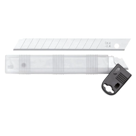 - Zapasowe ostrza łamane 9 mm z segmentową konstrukcją umożliwiają szybką wymianę. Wykonane ze stali, zapewniają czyste cięcie papieru, folii i kartonu. Opakowanie zawiera 10 sztuk.