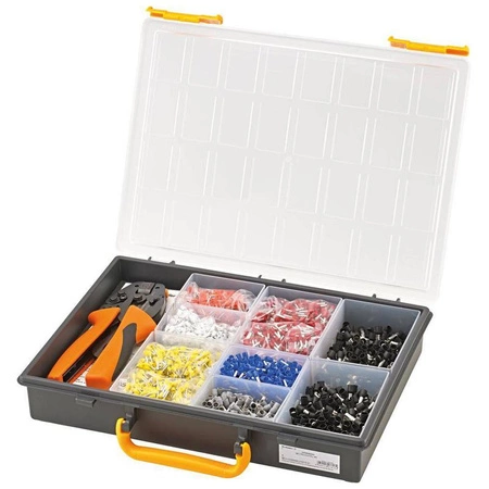 Zawartość zestawu:  1 szczypce do zagniatania PZ 6 roto L  po 500 tulejek kablowych 0,5; 0,75; 2,5; 4; 6 mm²  po 1000 tulejek kablowych 1; 1,5 mm²