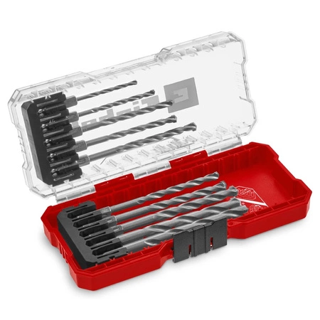 Zestaw wierteł Einhell S-CASE 10 szt. to praktyczny komplet przeznaczony do wiercenia w murach, cegle, kamieniu i betonie. Wiertła wykonane są z wysokiej jakości stali narzędziowej (tool steel) z końcówkami HM (węglik spiekany), co zapewnia wysoką odporność na zużycie oraz skuteczne wiercenie w twardych materiałach.