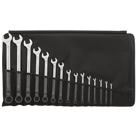 - 15 kluczy 6–32 mm z oczkami odsadzonymi pod kątem 15°. Matowe wykończenie, profil AS-Drive i etui z siatką dla wygody, organizacji i mobilności.