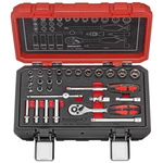- Zestaw 32 nasadek z bitem RIBE M5-M14. Długości 55, 100, 140, 200 mm, radełkowane. Mocowanie 12,5 mm (1/2"), wykonane ze stali S2 dla wytrzymałości.
