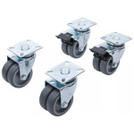 - Zestaw 4 kół skrętnych do platformy jezdnej BGS 80014. Ciche, elastyczne, z płytą montażową i śrubami, dwa kółka z hamulcami.