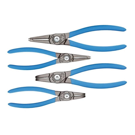 - Zestaw 4 szczypiec do wewnętrznych pierścieni osadniczych. Modele proste i zagięte, końcówki ze stali łożyskowej.