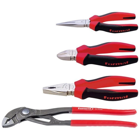 Zestaw 4 szczypiec: uniwersalne 180 mm, tnącze boczne 160 mm, radiowe 160 mm, nastawne 250 mm, FORMAT