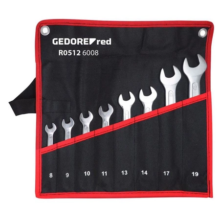Zestaw 8 krótkich kluczy płaskich dwustronnych 6–22 mm w rolce GEDORE RED