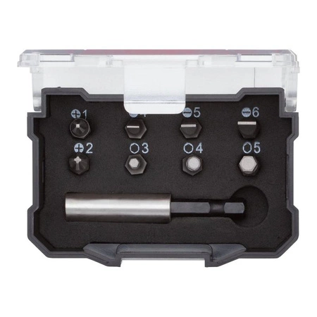 Zestaw bitów GEDORE RED R33005009 przeznaczony jest do prac ręcznych i maszynowych, zawiera najczęściej używane rozmiary bitów typu PH, SL oraz sześciokątnych (imbus). W komplecie znajduje się magnetyczny uchwyt umożliwiający stabilne mocowanie bitów i ich szybką wymianę. Bity wykonano z trwałych materiałów, a ich powierzchnia jest fosforanowana, co zwiększa odporność na korozję. Napęd zewnętrzny sześciokątny zgodny z DIN 3126 ISO 1173 - C 6,3 zapewnia szeroką kompatybilność z narzędziami. Całość zapakowana w kompaktowy uchwyt (bitbox) ułatwiający przechowywanie i transport.