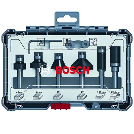 Zestaw frezów do wykańczania i wyrównywania, trzpień 8 mm, BOSCH, 6 szt.