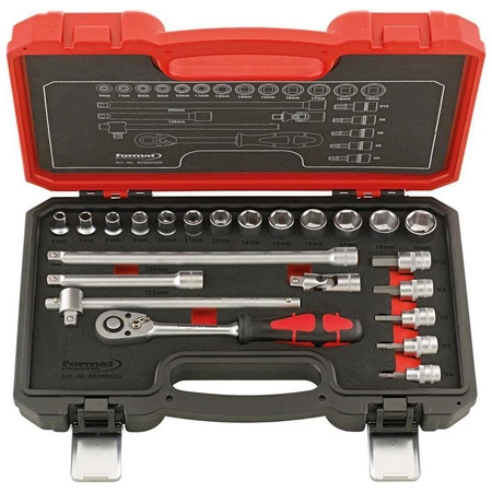 Zestaw końcówek wymiennych klucza nasadowego 3/8" 23-częściowy, w metalowej kasecie, FORMAT