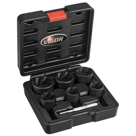 Zestaw nasadek do wykręcania uszkodzonych śrub z rowkiem spiralnym 1/2" z wybijakiem, 7 -częśc. 21-32mm w walizce