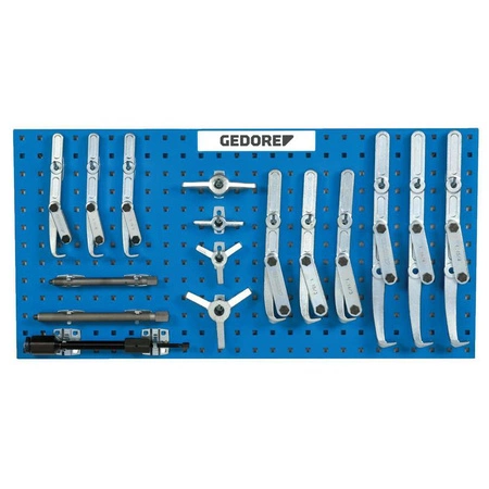Zestaw ściągaczy GEDORE 2.40 to kompletne rozwiązanie dla profesjonalnych serwisów maszyn rolniczych i budowlanych. Umożliwia samodzielny montaż aż dziesięciu popularnych ściągaczy z serii 1.14 i 1.15. Wyposażony w hydrauliczne wrzeciono o sile 10 ton, pozwala na efektywne, bezpieczne i kontrolowane zdejmowanie kół, łożysk oraz innych elementów mechanicznych. Wszystkie części są przejrzyście rozmieszczone na tablicy perforowanej, gotowej do zawieszenia.Cechy i korzyści