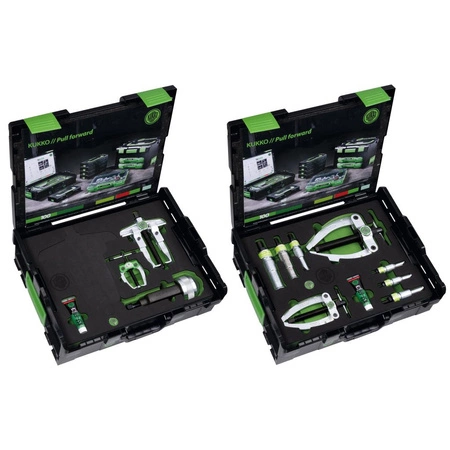 Wykonanie: dostawa w skrzynce narzędziowej L-Boxx z instrukcją obsługi w pokrywie. Zawartość zestawu: 6 ściągaczy wewnętrznych (12–46 mm) 21-1 do 21-6 2 podpornice 22-1; 22-2 1 uchwyt do ściągania pierścieni wewnętrznych łożysk kulkowych zwykłych 23