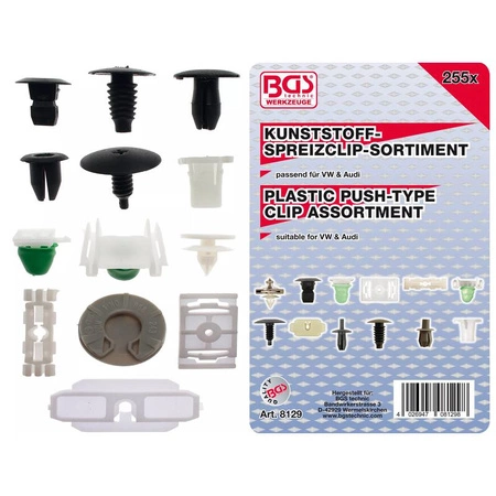 Zestaw spinek tapicerskich do samochodów VW 255 szt., BGS 8129