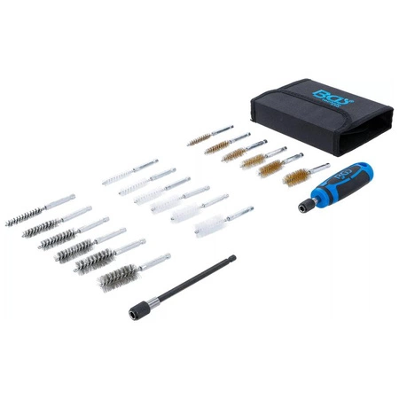 - Zestaw szczotek 20 szt. do czyszczenia metalu, plastiku i drewna. Włosie mosiężne, nylonowe i stalowe.