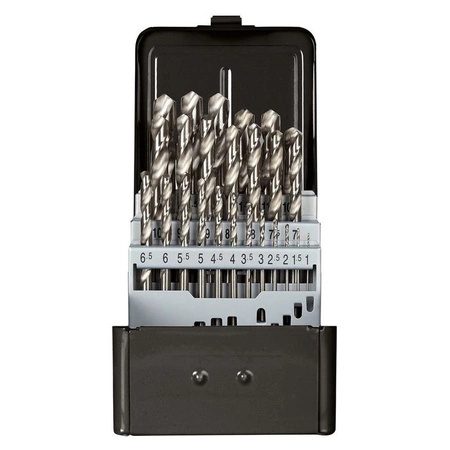 - 25 wierteł HSS w rozmiarach Ø 1–13 mm (co 0,5 mm)