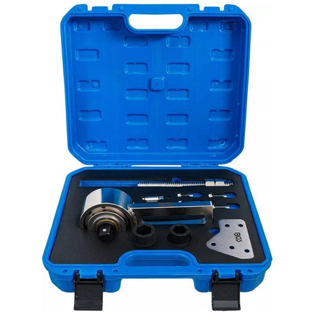 - zmiennik momentu obrotowego w połączeniu z uchwytem i płytką ustalającą nadaje się do luzowania i dokręcania śruby koła pasowego wału korbowego zgodnie ze specyfikacją producenta