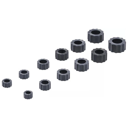 - zawiera 12 adapterów w następujących rozmiarach: 8 - 9 - 10 - 11 - 12 - 13 - 14 - 15 - 16 - 17 - 18 - 19 mm