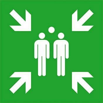 - Znak ratunkowy „Miejsce zbiórki do ewakuacji”