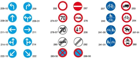 - Znaki drogowe, okrągłe, nr znaku od 208 do 241