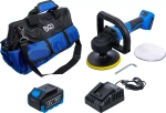 Zestaw akumulatorowej polerko-szlifierki bezszczotkowa 18 V z akumulatorem i szybka ładowarka, BGS 7395